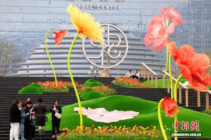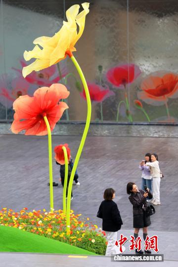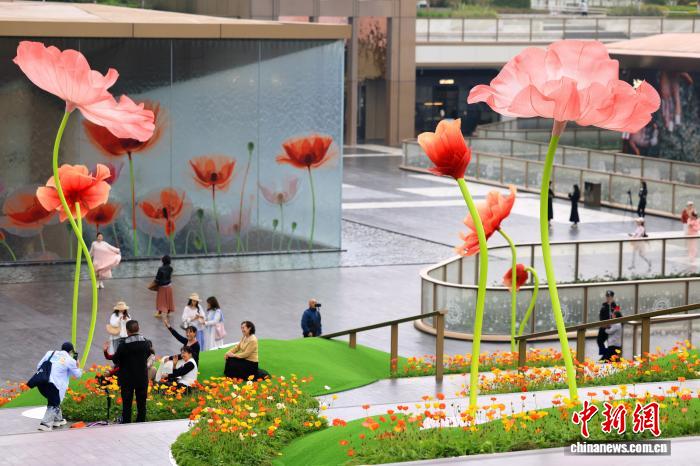 成都:巨型“虞美人”扮靓街头吸引市民打卡